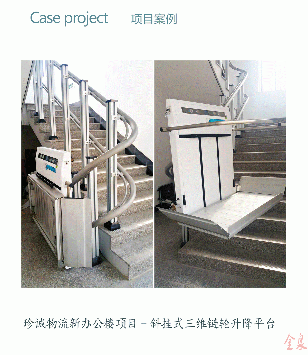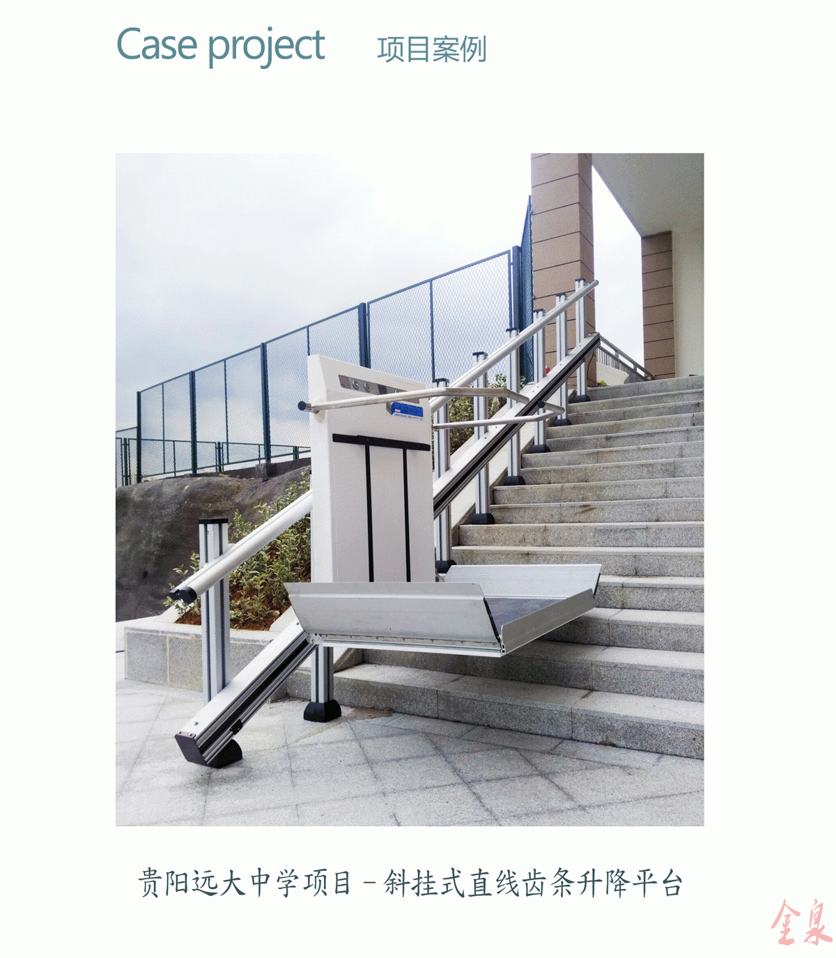 傾斜式無(wú)障礙升降平臺(tái)可安裝在室內(nèi)和室外,可安裝在大型公共場(chǎng)所,如療養(yǎng)院,學(xué)校,餐廳,酒店,機(jī)場(chǎng),地鐵,商場(chǎng)等。我們的斜掛式無(wú)障礙升降機(jī)平臺(tái)使用根據(jù)樓梯形狀設(shè)計(jì)的高精度導(dǎo)軌,可應(yīng)用于直線,弧形,螺旋形樓梯。