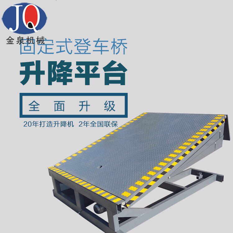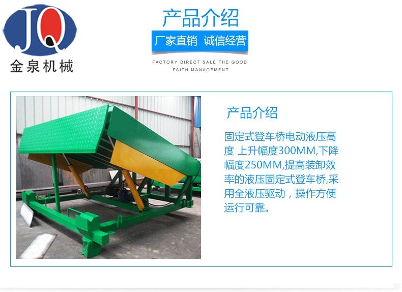 固定液壓登車橋是用于叉車與貨車之間的搭橋設(shè)備,方便裝卸貨物。液壓登車橋在現(xiàn)代物流現(xiàn)場已是一非常易見的結(jié)構(gòu) 形式。它是企業(yè)物流鏈的起點(diǎn)與終點(diǎn),是企業(yè)快速、安全周轉(zhuǎn)產(chǎn)品及貨物的一個裝卸貨操作平臺。 裝卸貨操作平臺的高度固定,但來往運(yùn)輸車廂的廂地高度不一,運(yùn)輸車輛與裝卸貨站臺之間總是形成一定的高度落差或間隙。造成搬運(yùn)叉車不能進(jìn)出運(yùn)輸車輛直接裝卸貨物。運(yùn)用登車橋提供可靠的連接。使搬運(yùn)叉車能夠安全、快速地進(jìn)出運(yùn)輸車輛進(jìn)行裝卸貨作業(yè)。